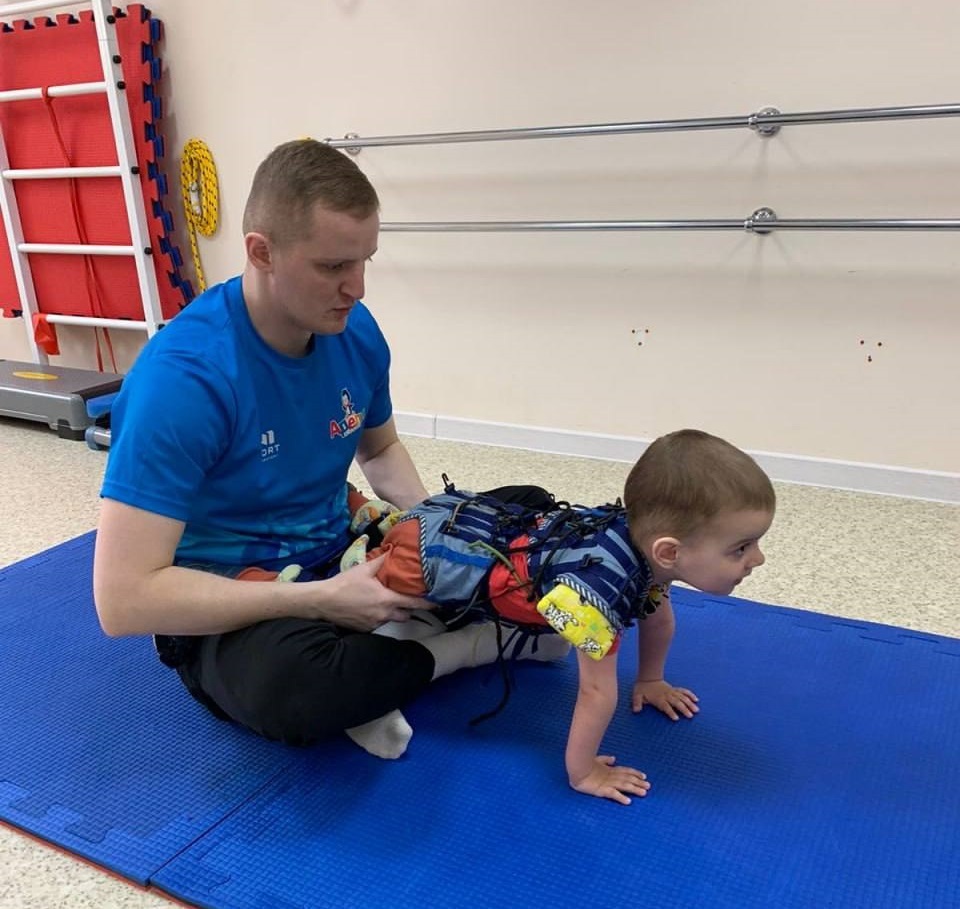 Первые тревожные звоночки появились, когда Саше исполнилось три месяца. На УЗИ головного мозга обнаружили увеличение правого желудочка, но врачи успокоили, что это не страшно и пройдет само собой. Однако к шести месяцам родители заметили, что мальчик плохо сидит, заваливается в стороны и поджимает пальцы ног. Ползал он только по-пластунски. После обращения к неврологу начались первые реабилитационные мероприятия: массаж и физиотерапия.